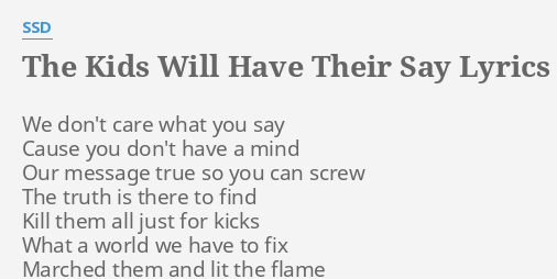The Kids Will Have Their Say Lyrics. Lyrics to The Kids Will Have Their Say by SSD. Worldwide song lyrics and translations All lyrics are property and copyright of their owners.